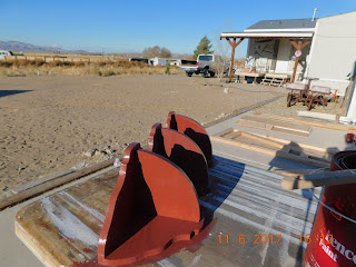 Got the day going yesterday and Ken got working on the outhouse. He finished caulking around the toilet bowl and hooking it up to the water line. Then he got to making the door.