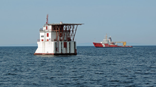 The Gros Point Light lies just north of the Canada/US boarder. It was being serviced by a Canadian Coast Guard ship during one of Last Dance's passes by this point.